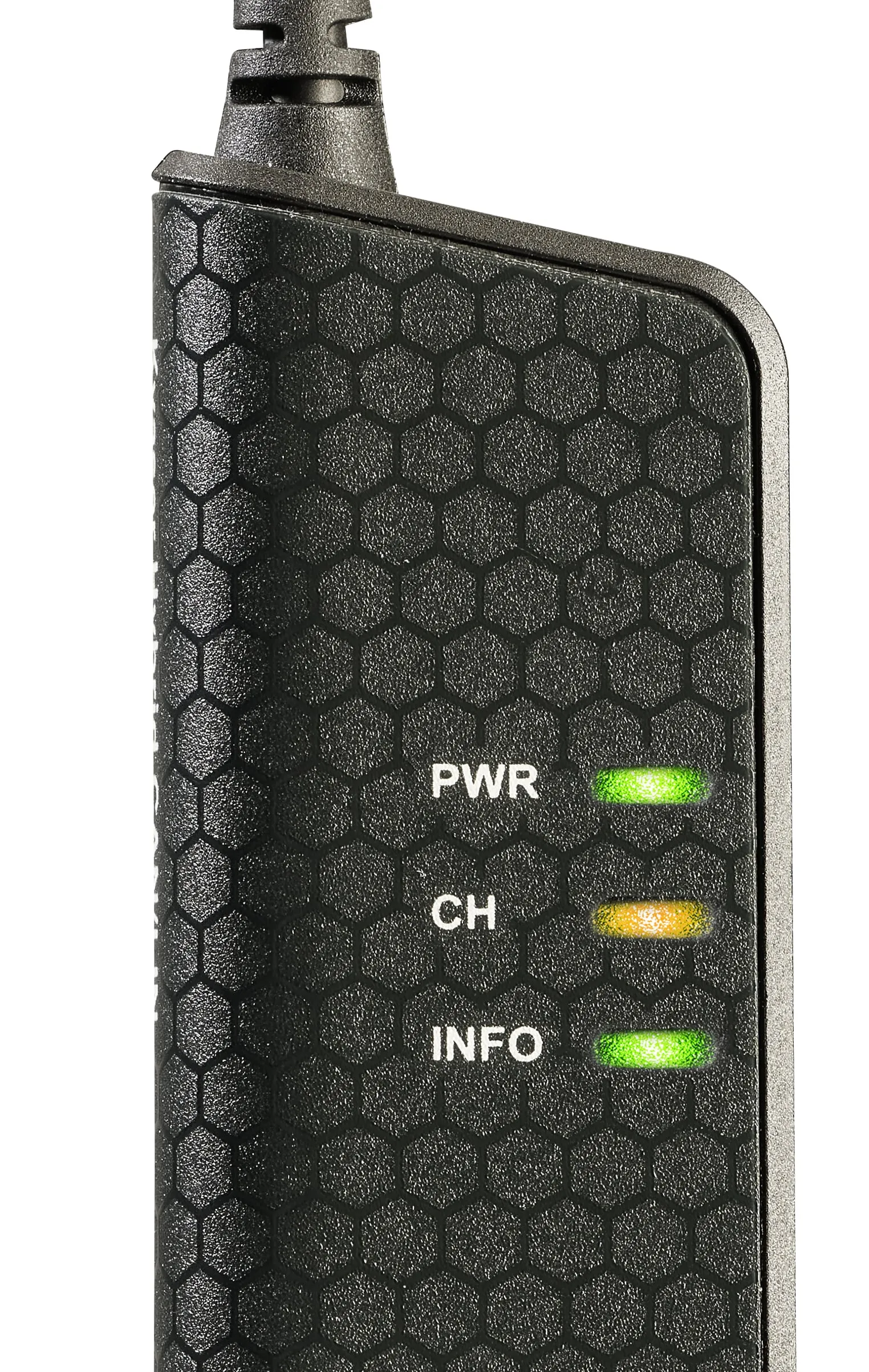 - LED lights alert user to device status.